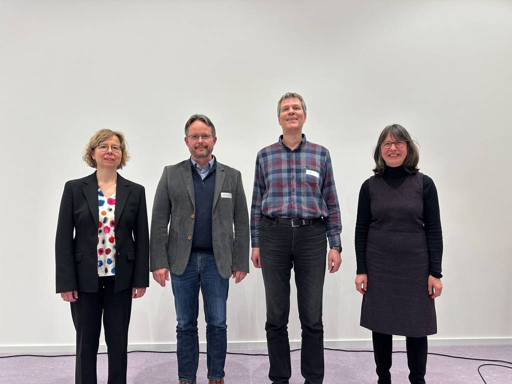 von links nach rechts: Schuldekanin Dr. Sabine Bayreuther, Pfarrer David Reichert (Stellvertretender Dekan), Dr. Till Einig (Vorsitzender der Bezirkssynode), Dekanin Ute Jäger-Fleming